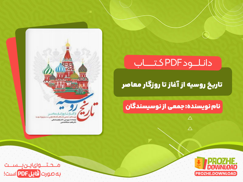 دانلود و خرید در کتاب تاریخ روسیه از آغاز تا روزگار معاصر گودرز رشتیانی،دولت روسیه در قرن نهم میلادی تاسیس شد. این کشور پهناور که در آسیای شمالی و اروپای خاوری واقع شده است، با اقیانوس آرام شمالی و اقیانوس منجمد شمالی، دریای خزر، دریای سیاه، و دریای بالتیک مرز آبی دارد. در ادامه به بررسی و معرفی کتاب تاریخ روسیه از آغاز تا روزگار معاصر گودرز رشتیانی در سایت دانلود پروژه خواهیم پرداخت.